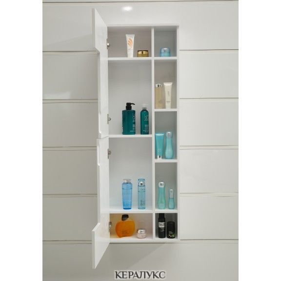 Практична ПВЦ колона за стенен монтаж с 2бр. вратички. Тя ви дава възможност да увеличите мястото за съхранение в банята или мокрото помещение. Заема малко място и допълва чудесно интериора на банята.