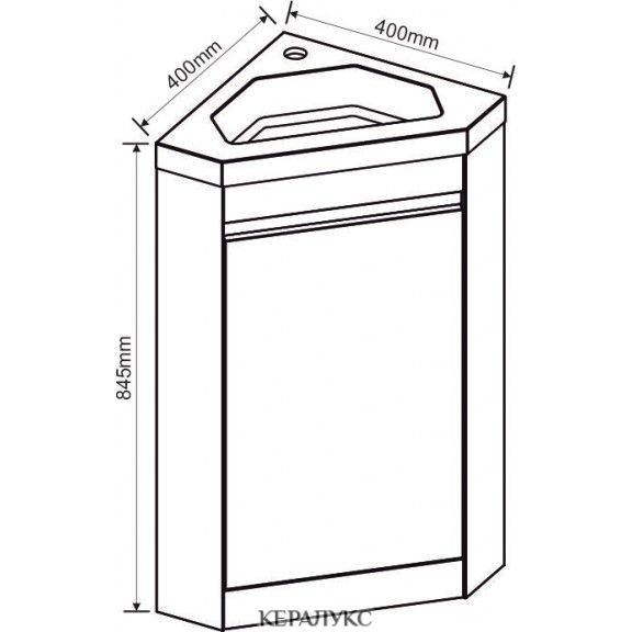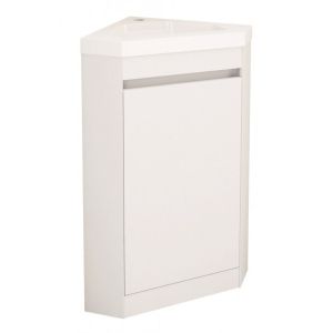 Удобен и компактен, този ПВЦ шкаф за баня е предназначен за стоящ монтаж в ъгъл. Той е с 1 вратичка, с механизъм за плавно затваряне и умивалник от смоли.