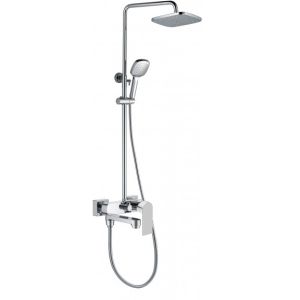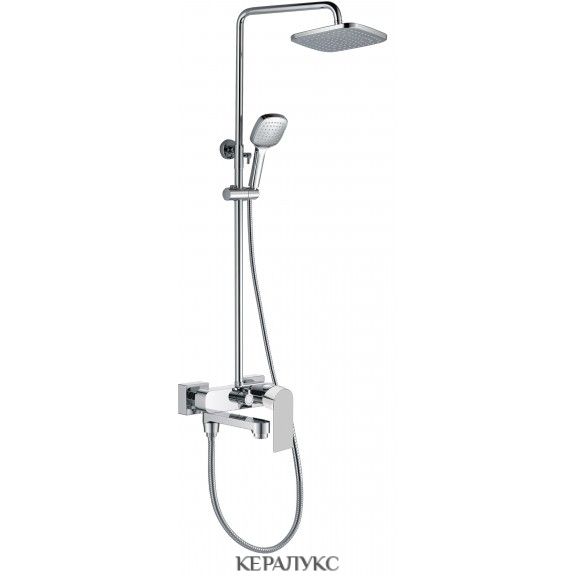 Душ система ЕЛМИРА привлича вниманието с красивия си дизайн. Има три изхода за вода - стационарен душ с пита, подвижен душ тип слушалка и подвижен чучур.