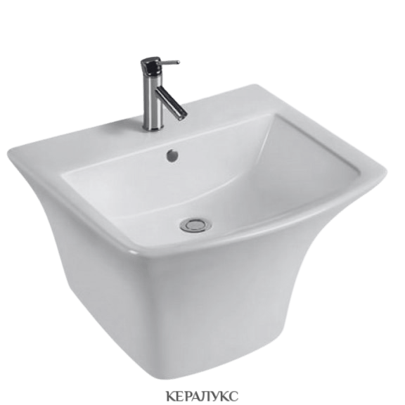 Порцеланов умивалник за баня с полуконзола, отвор за смесител, преливник и стенен монтаж.