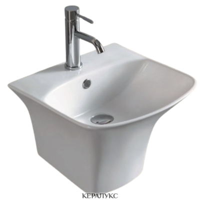 Порцеланов умивалник за баня с полуконзола, отвор за смесител, преливник и стенен монтаж.