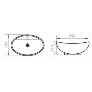Порцеланов умивалник за монтаж върху плот с отвор за смесител и преливник.