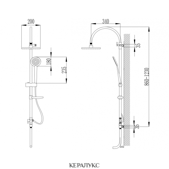 Има два изхода на водата - стационарен душ тип пита и подвижна слушалка.