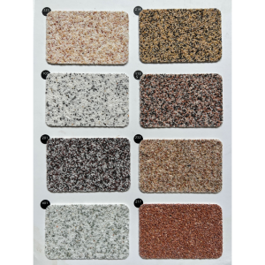 ОПИСАНИЕ: Издръжлив декоративен материал за външно покритие на основата на акрилно съполимерно свързващо вещество и гранит мрамор.