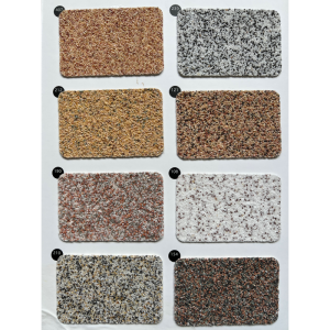 ОПИСАНИЕ: Издръжлив декоративен материал за външно покритие на основата на акрилно съполимерно свързващо вещество и гранит мрамор.