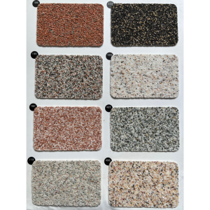 ОПИСАНИЕ: Издръжлив декоративен материал за външно покритие на основата на акрилно съполимерно свързващо вещество и гранит мрамор.