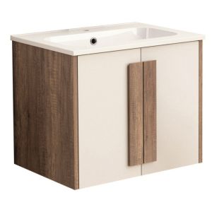 Удобен, практичен и красив - ПВЦ шкафът за баня ICP 6451 има 2 врати с механизъм за плавно затваряне и умивалник от смоли.