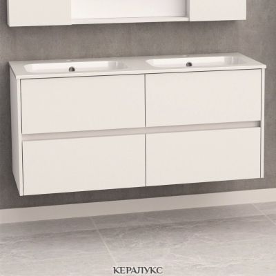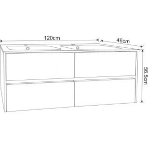 Удобният и елегантен ПВЦ шкаф за баня ICP ICP 11955 е с 4 чекмеджета с механизъм за плавно затваряне и умивалник с две корита от смоли.